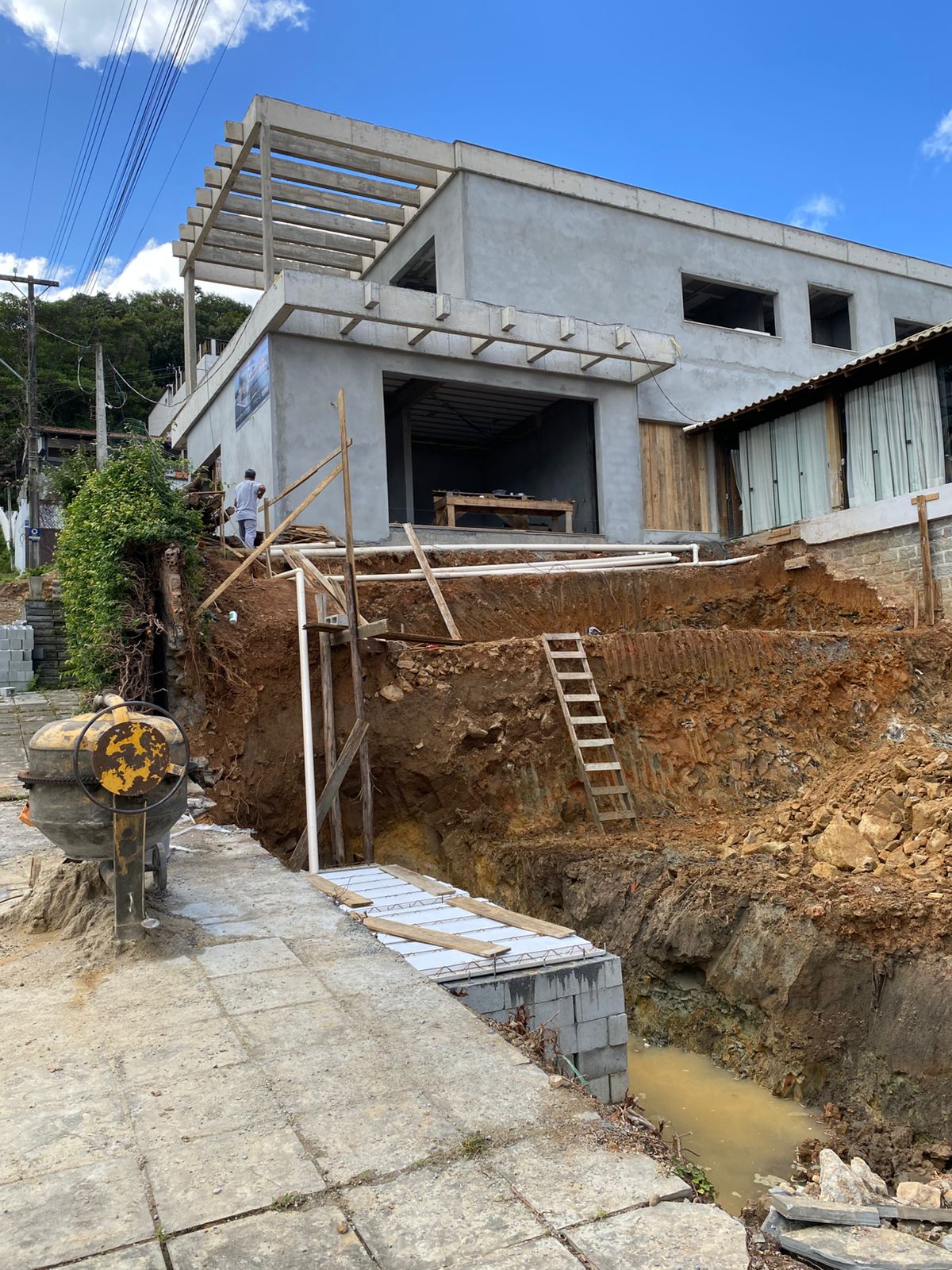 Projeto de contenção e piscina de concreto armado desenvolvido para uma edificação residencial de alto para com aproximadamente 380m² de área construída. O terreno da obra tinha característica acidentada, onde foi necessário fazer cortes e prever contenções para garantir a estabilidade da piscina que tinha as partes do SPA e prainha em balanço.