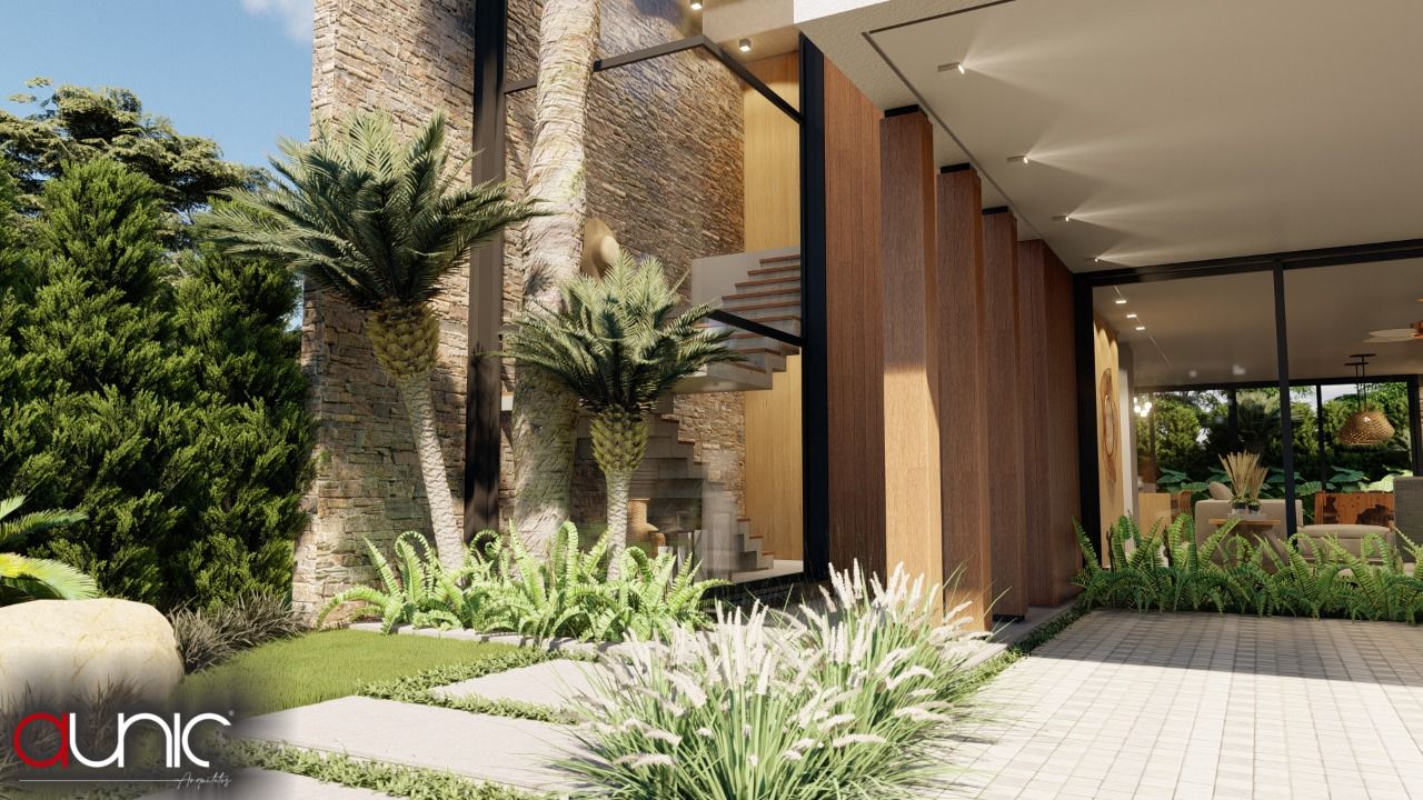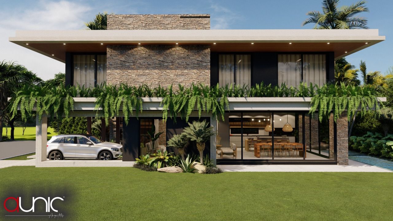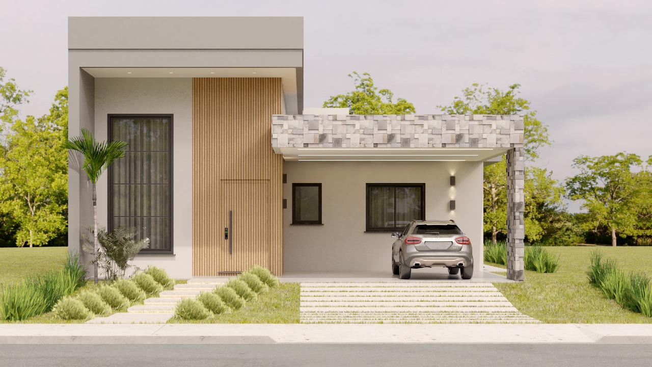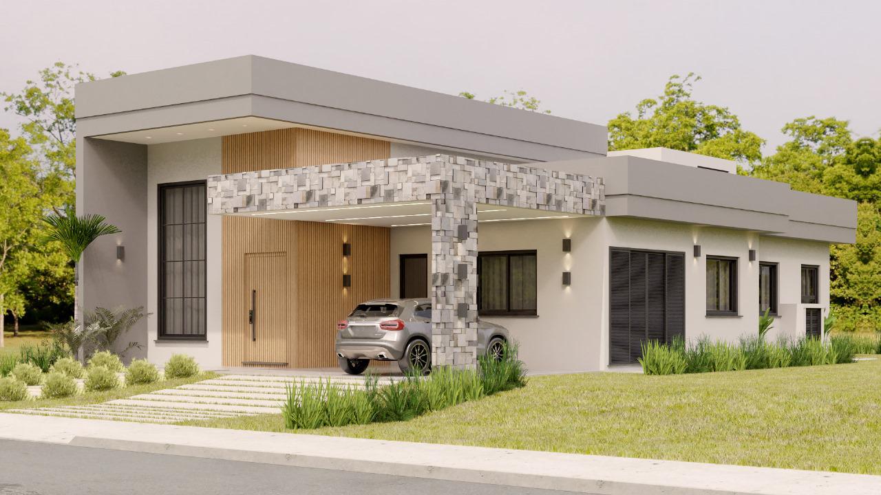 Projeto idealizado para um loteamento residencial. A edificação é de único pavimento térreo com pé-direito duplo em concreto armado atendendo integralmente à proposta arquitetônica e garantindo modernidade, funcionalidade e segurança estrutural.