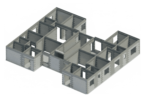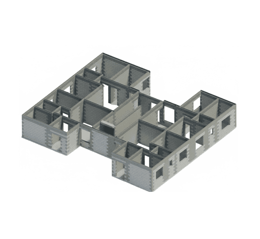 Modelagem estrutural de conjuntos residenciais multifamiliares com quatro pavimentos em blocos de concreto estrutural (alvenaria estrutural). A construtora solicitou a conversão do projeto 2D para modelo 3D, com o objetivo de compatibilizar as disciplinas e realizar comparativos de custos a partir dos quantitativos extraídos diretamente da modelagem estrutural.